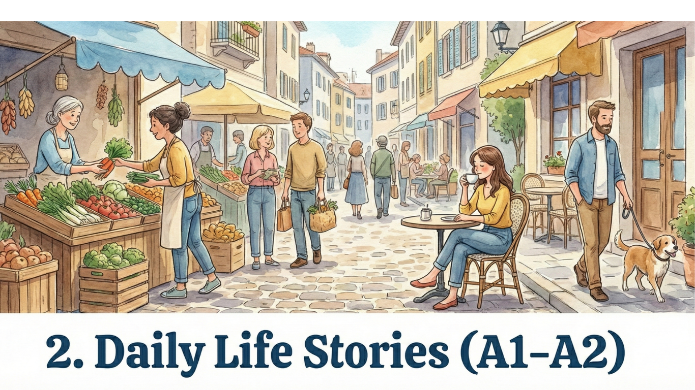 Stories that help improve speaking and listening skills through simple dialogue, repetition, and natural expressions.