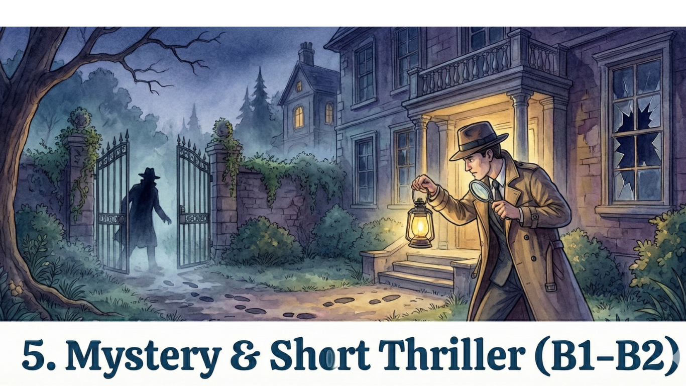 Fun suspenseful stories crafted for intermediate learners who want engaging content that builds confidence naturally.